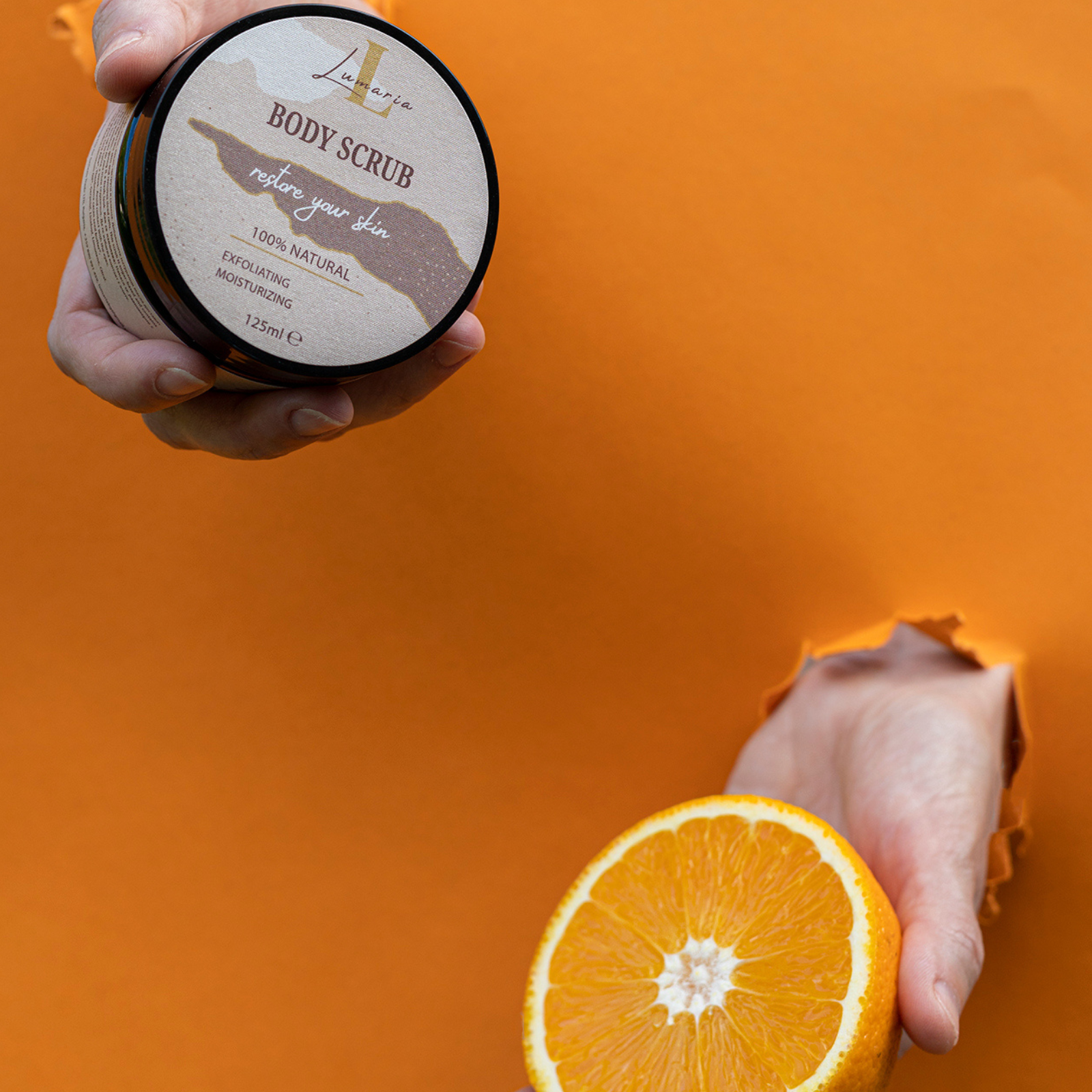 ✅Ние от Lumaria изключително много държим на качеството и естествения произход на нашите продукти. Вдъхновени от природата, създадохме 100 % натурален скраб за тяло, който съдържа съставки с изцяло естествен произход от органично земеделие. Представлява бленд от захароза, кафе, какаово масло и други натурални масла, извлечени от семената и листата на редица растения. Тези масла доставят на кожата важни витамини и микроелементи, придавайки ѝ неповторим аромат и свеж външен вид.